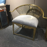 Item Name: Luxury Living Room Modern Single SofaFrame Color: Golden/Silver/Rose GoldChair frame: #201 stainless steelFrame Finish: Chromed and WeldingWeight: about 7kgs/pcsSeater: High density sponge, good quality PU leather or fabricsFeature: Modern, Shiny, Luxury, High Class, High QualityUsages: Church Services/Hotel/Banquet Hall/Outdoor Events High Quality Wedding...