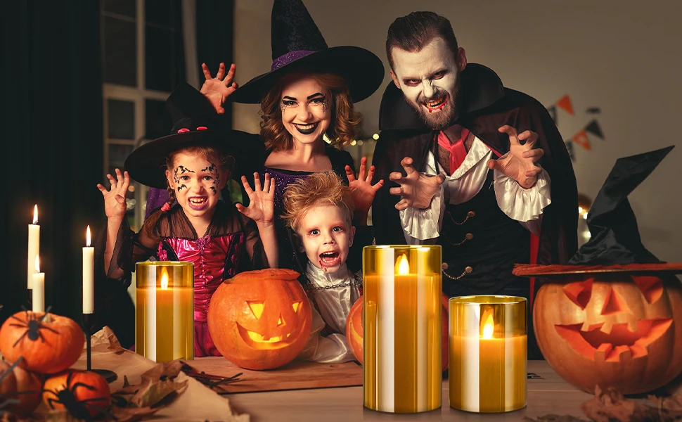 • Perfect Halloween Decor . The amber LED candle lights emits a warm glow. Suitable for different family rooms, dining tables, bedrooms on nightstands, coffee tables, offices, bars, hotels, patios, Halloween, Christmas, weddings, birthdays, holidays, night parties.