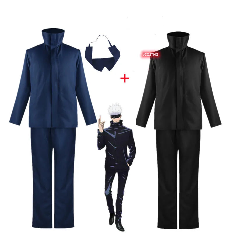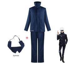The outfit includes Gojo's iconic blue and black top with matching pants, tailored for a sleek, comfortable fit. To complete the look, the set also comes with his signature eye mask, giving you the mysterious, powerful aura that defines Gojo Satoru.
