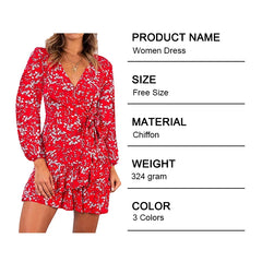 As the season changes, this dress becomes your perfect transition piece. The fabric feels like wearing a soft breeze against your skin - that perfect chiffon blend that's neither too heavy nor too light. Those long sleeves? They're just right for crisp mornings that turn into warm afternoons. And the V-neck? It's cut to flatter without needing constant adjustment.
