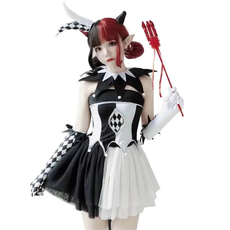 Black poker circus clown Cosplay ghost bride Witch Halloween uniform