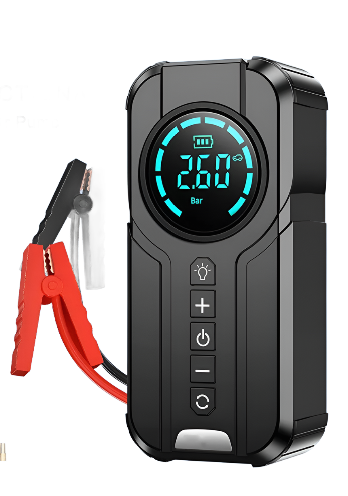 Portable Air Compressor: Topping up your car's tire pressure has never been easier. The built-in air pump allows you to inflate your tires on the go, ensuring optimal pressure for a safe and smooth ride. Say goodbye to long waits at gas stations or the inconvenience of manual pumps.