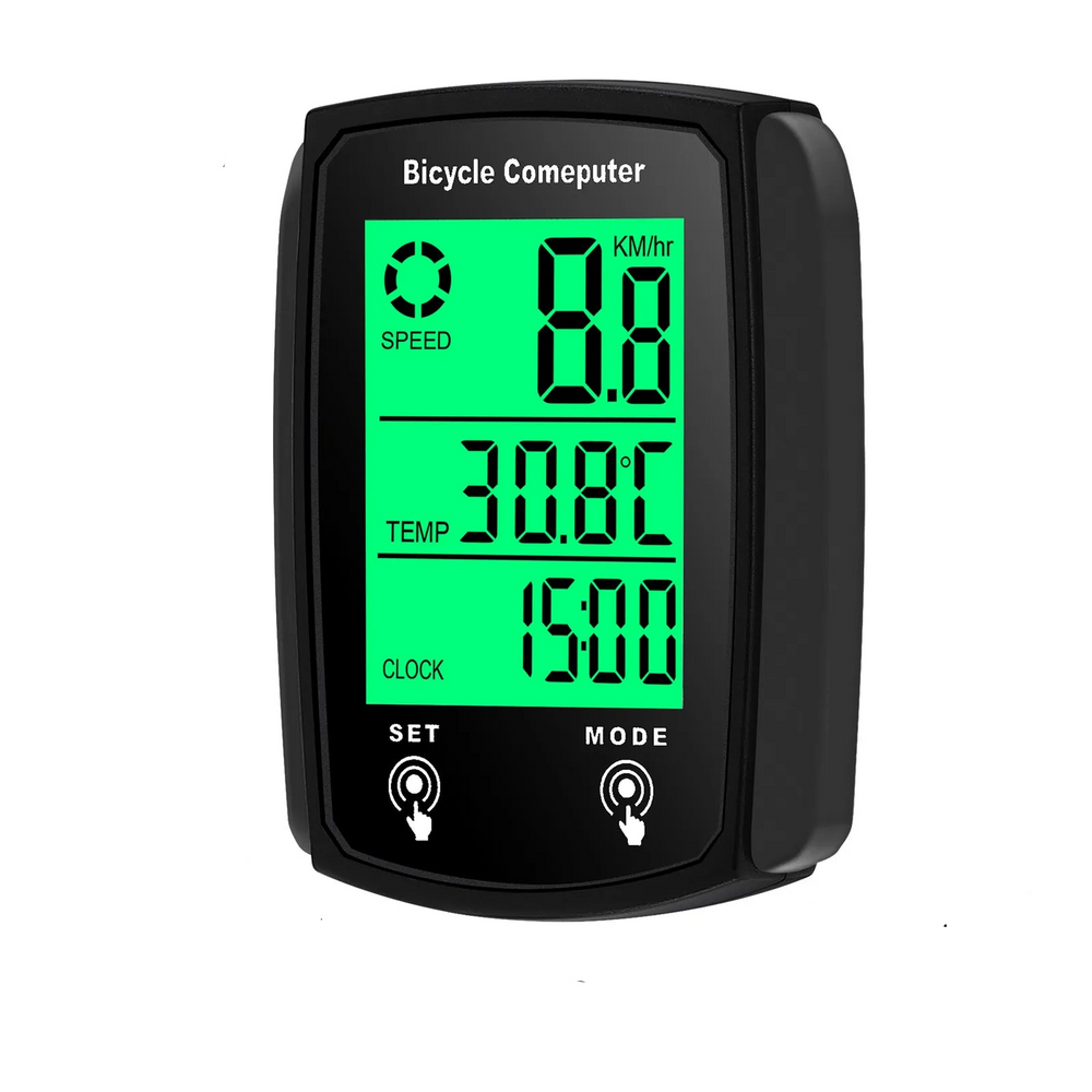 Time Display: The speedometer also includes a clock function that displays the current time, allowing cyclists to track their ride duration and plan their cycling schedule accordingly. This feature is useful for timing workouts, pacing intervals, or simply keeping track of time while on the trails.