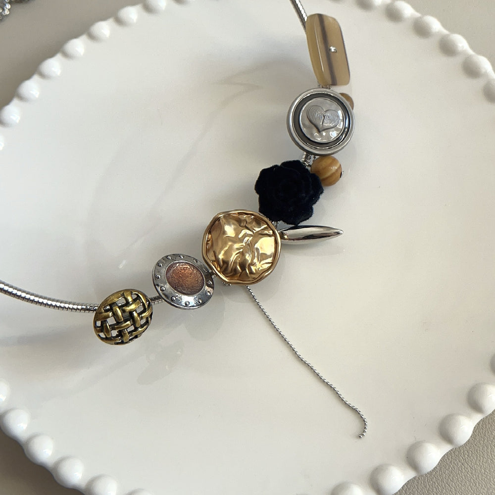 You know those tiny details that make you stop and stare? This necklace’s got ‘em. We’re talking delicate chains, beads, and charms all woven together into a heart, giving it major texture and a serious “where’d you get that?” factor.