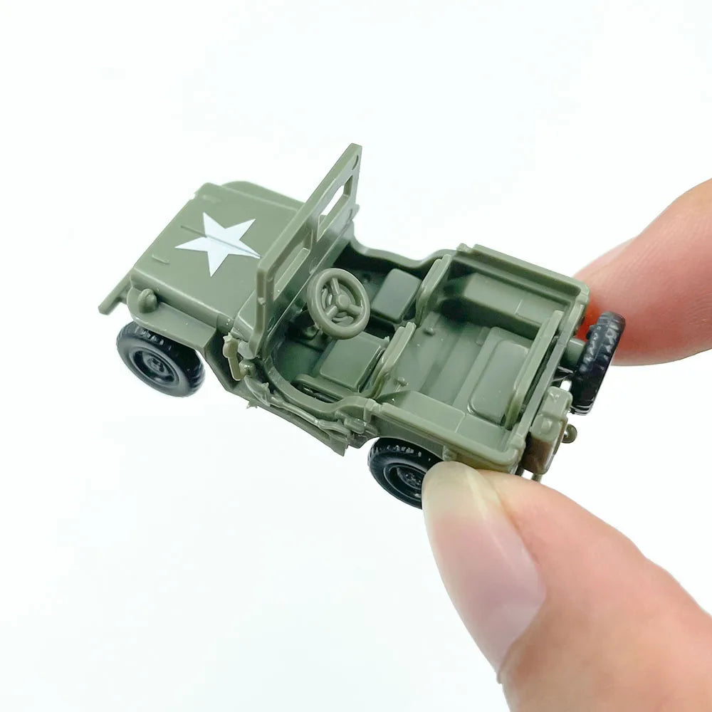 1/72 Scale US Willys Jeep Assemble WW2 GP Military Vehicle Puzzle Block Car Collections Decor Scene Sandpan Game Model Toy W/Trailer