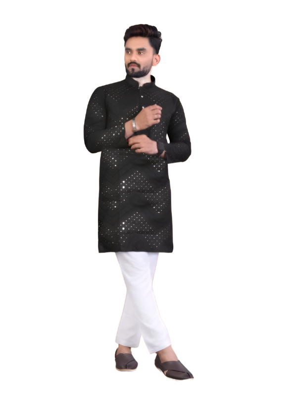 Sophisticated Style: With its heavy Banglori silk fabric and intricate embellishments, this kurta payjama set exudes sophistication and style. It's the perfect choice for men who appreciate fine craftsmanship and attention to detail in their attire.