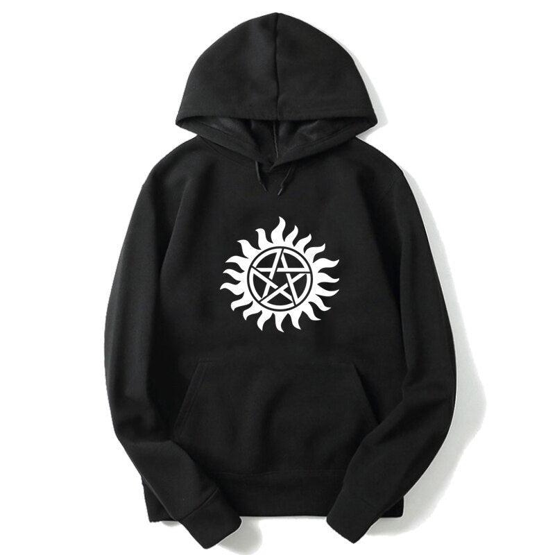 Unique Design: The hoodie features prints inspired by the Supernatural TV series, likely including symbols, logos, characters, or quotes from the show. The unique design appeals to fans of the series and adds a pop culture element to your wardrobe.