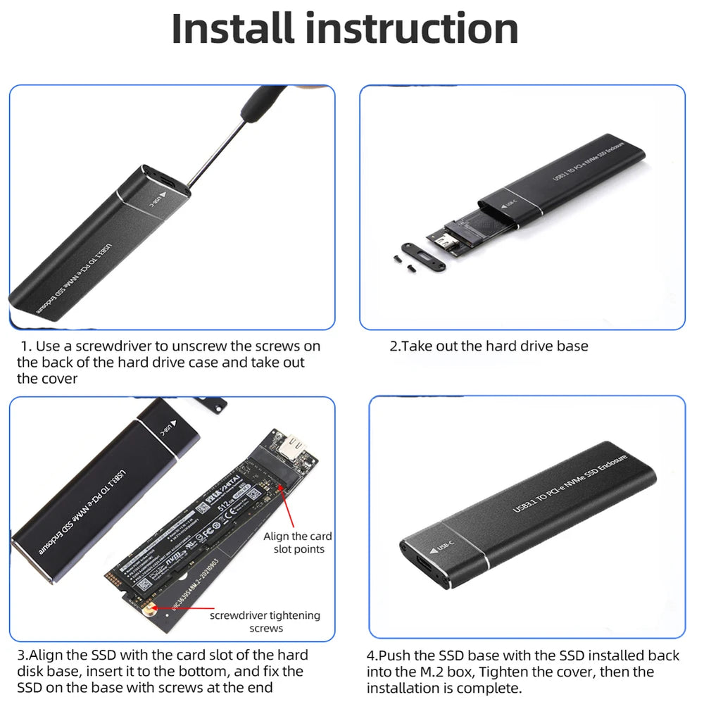 Enclosure Case Design: The enclosure features a compact and lightweight design, making it highly portable and suitable for use on the go. The durable enclosure case provides protection for the NVMe SSD, shielding it from physical damage, dust, and moisture.