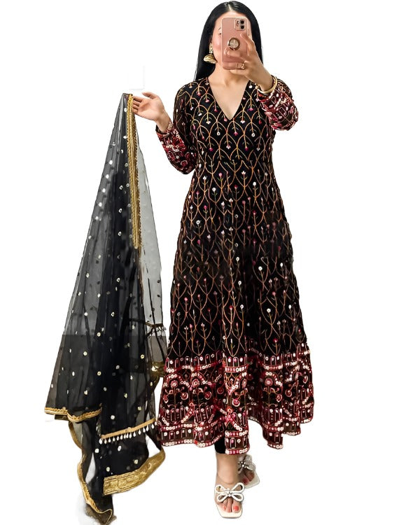Elevate your ethnic wardrobe with our Viscose Velvet Heavy Anarkali Umbrella Embroidery Kurti, and make a grand style statement that reflects your impeccable taste and sophistication. With its luxurious fabric, intricate embroidery, and flattering silhouette, this kurti is sure to become a cherished favorite for years to come.