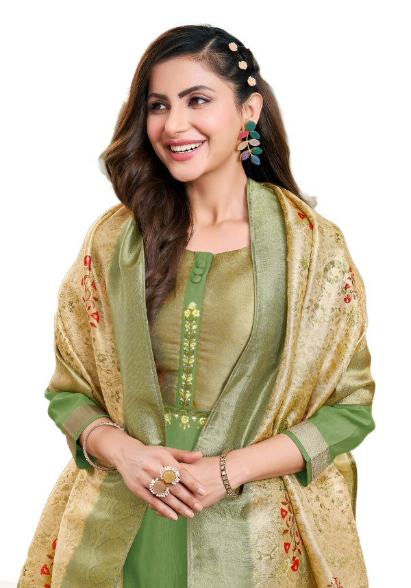 Elevate your ethnic attire with the opulent charm of our Vivil Silk Kurti Pant Dupatta set, and make a sophisticated style statement wherever you go.