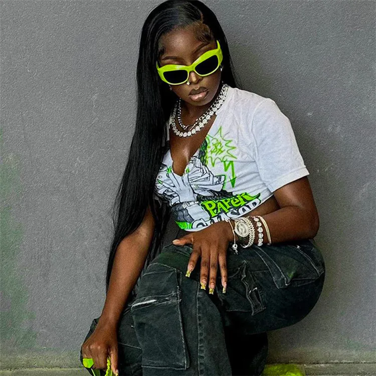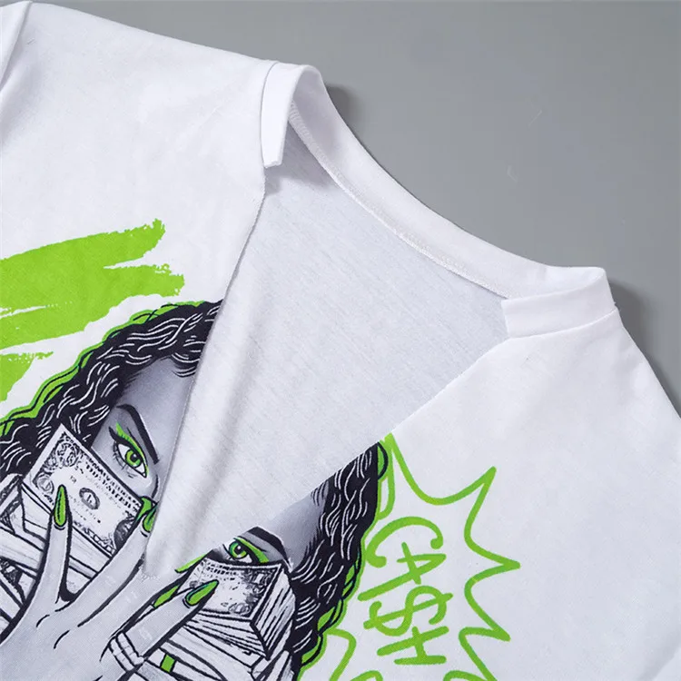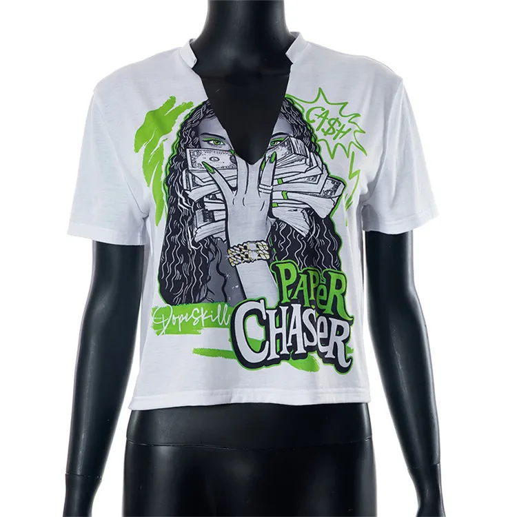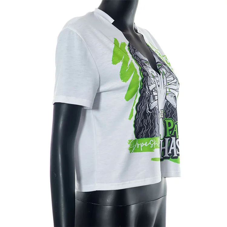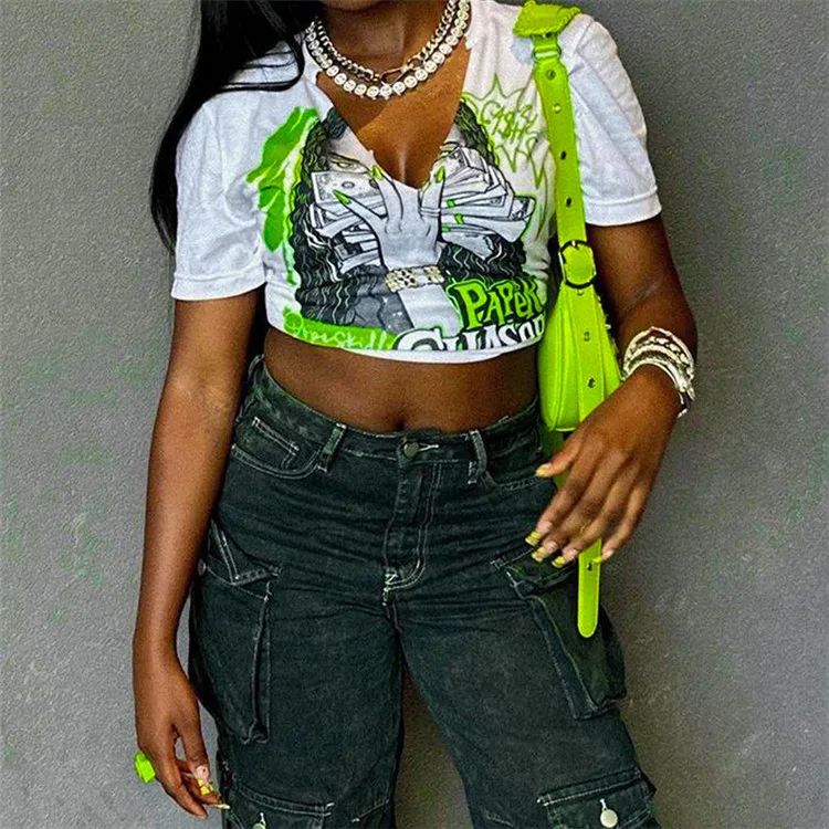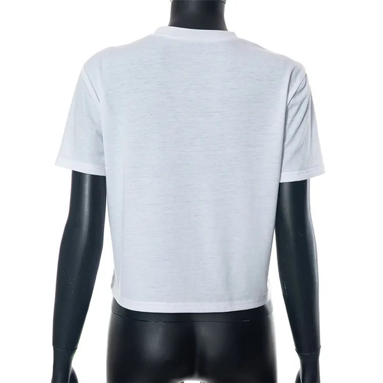 2024 Summer Women Short Sleeve Graphic Streetwear White Crop Tops T Shirts Tees