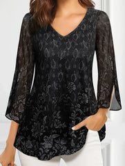 We made this blouse thinking about real women with real lives. The fabric - a soft, breathable mesh - moves with you whether you're running errands or meeting friends for lunch. And that double layer? It's our little secret for giving you coverage without the bulk.